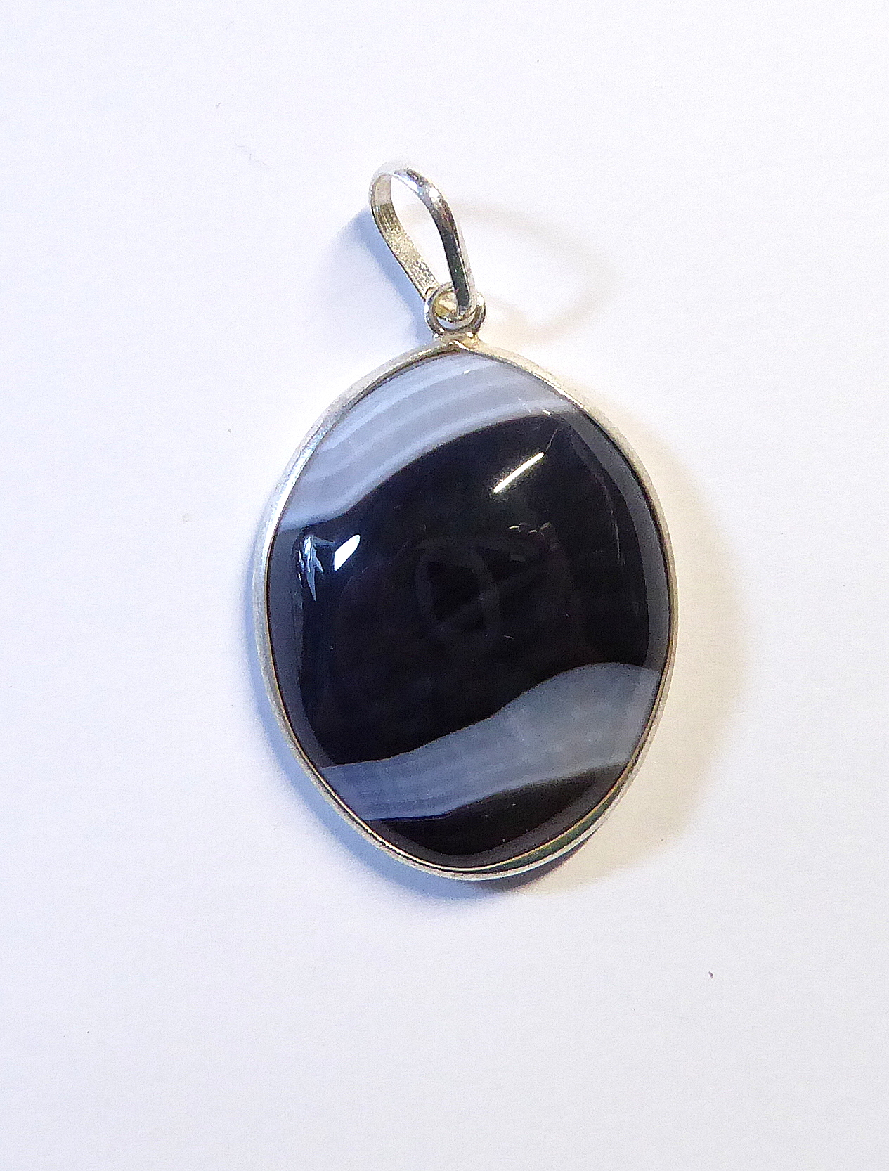 Silberanhänger mit einem schwarz gefärbten Achat-Cabochon in ovaler Form an einer großen Silberöse