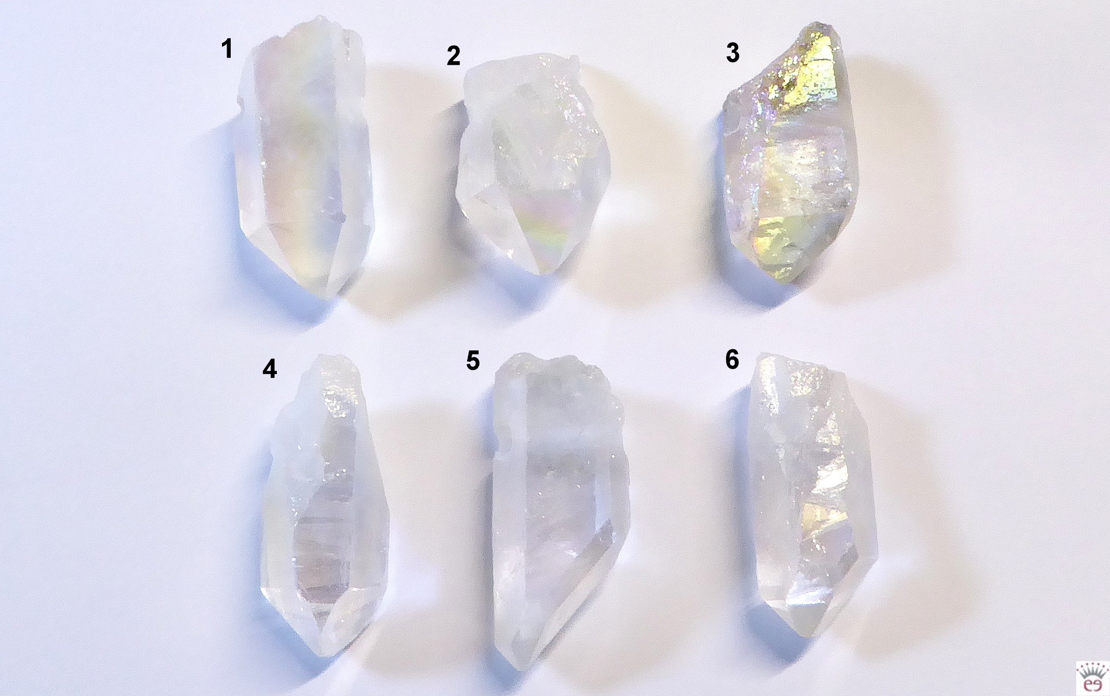 Die natürlich gewachsenen Bergkristallspitzen wurden mit Gold und Platin bedampft und schimmern in allen Regenbogenfarben - was leider auf dem Foto nicht so gut zu erkennen ist - daher der Name "Angel Aura".