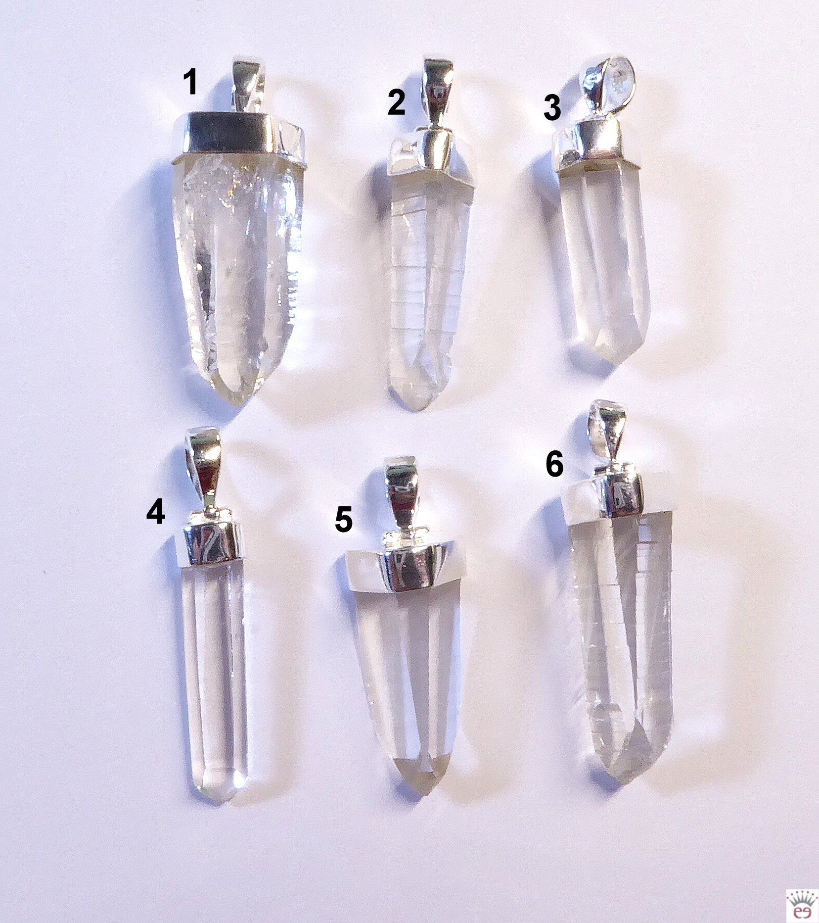 Edelsteinanhänger Bergkristallspitze roh, Silberöse 925, rhod., ca. 28-35mm lang