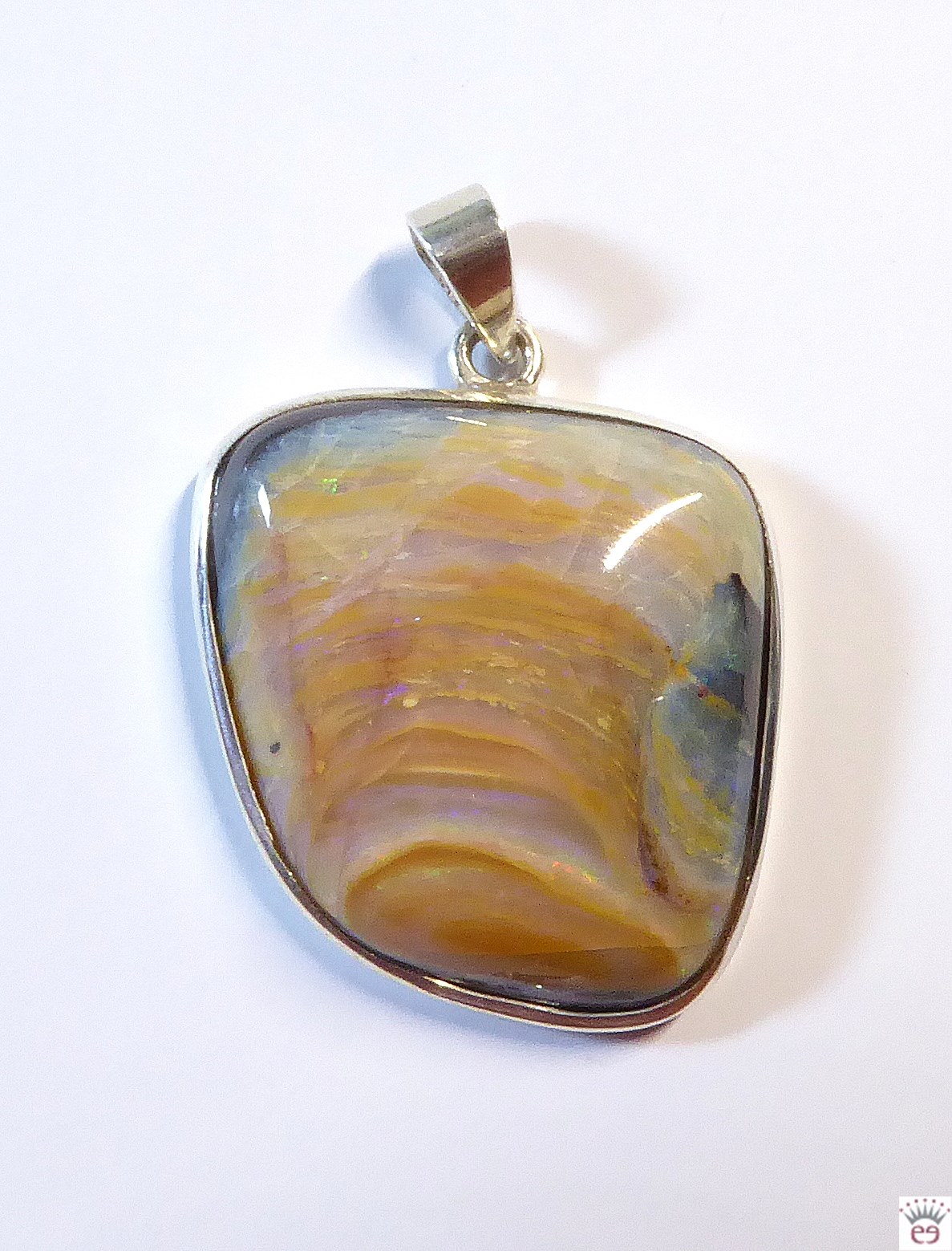 Sehr schöner Boulderopal-Cabochon in Freiform in einer Silberfassung