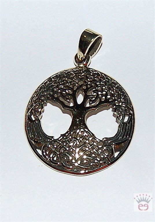 Ein schöner, leicht bauchiger, goldgelb glänzender Bronzeanhänger mit dem "Baum des Lebens" als Motiv