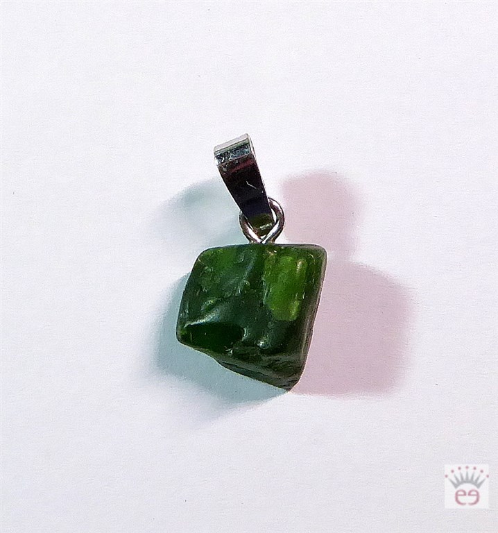 Kleiner (bitte die Maßangaben beachten), aber feiner Edelsteinanhänger aus rohem Diopsid in Freiform an einer Silberöse
