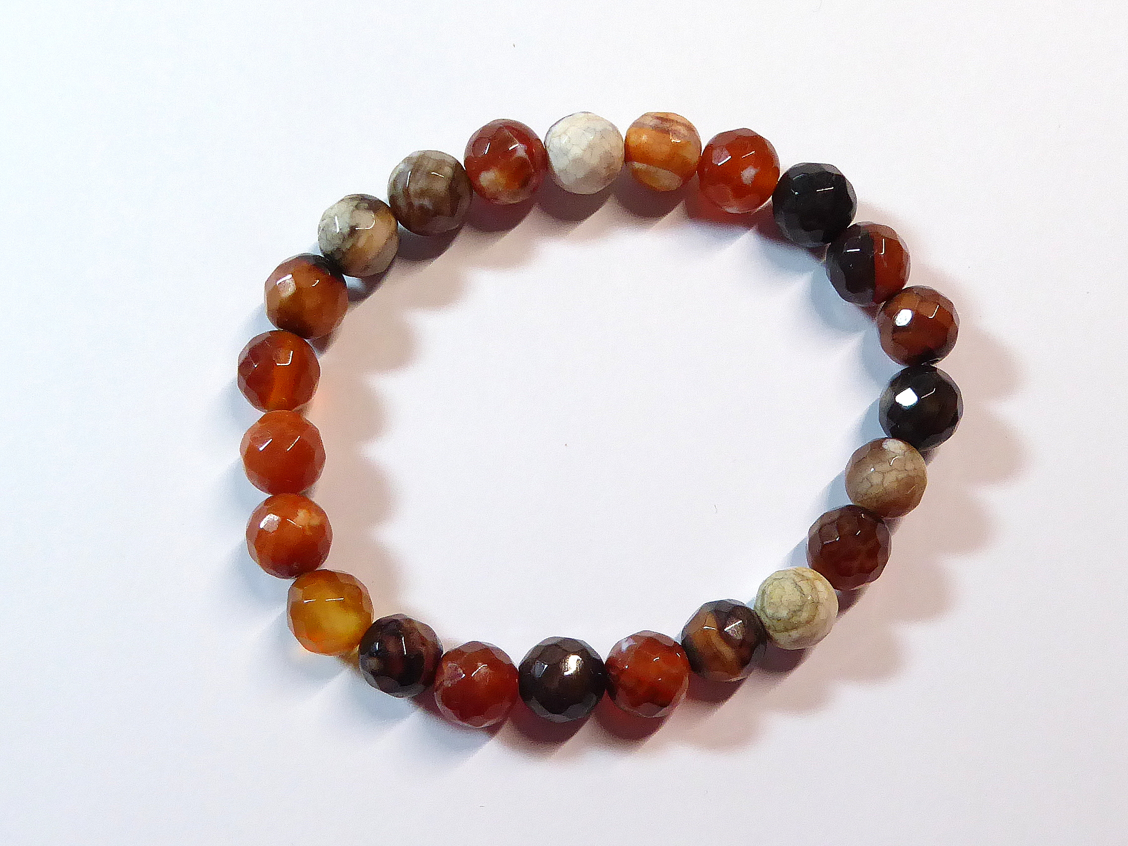 Edelsteinarmband mit facettierten rot-braun gefärbten und erhitzten Achat-Kugeln