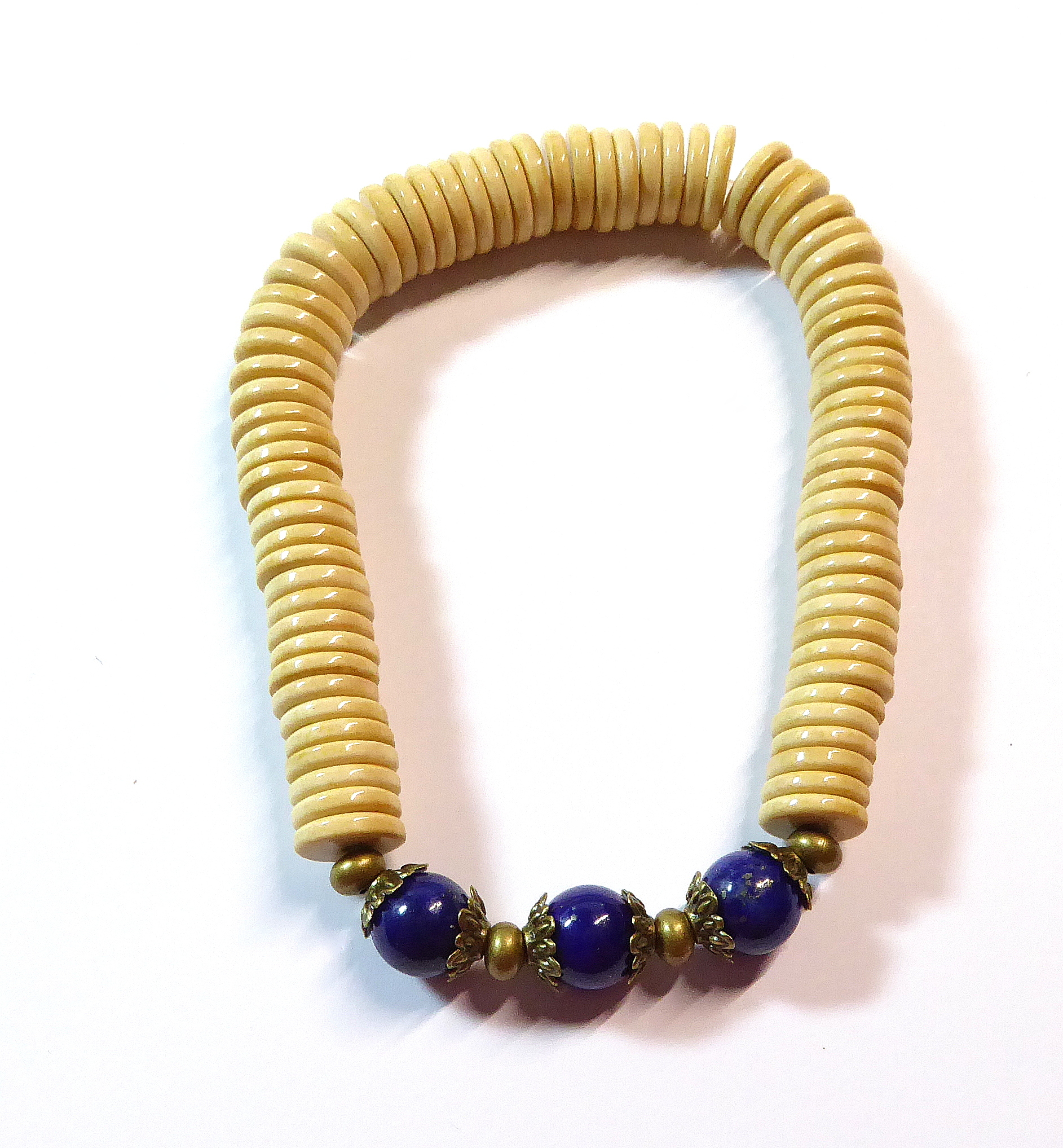 Edelsteinarmband mit Rondellen aus gefärbtem Achat und Kugeln aus Lapislazuli - kombiniert mit Metallelementen in Antik Bronze Farbe
