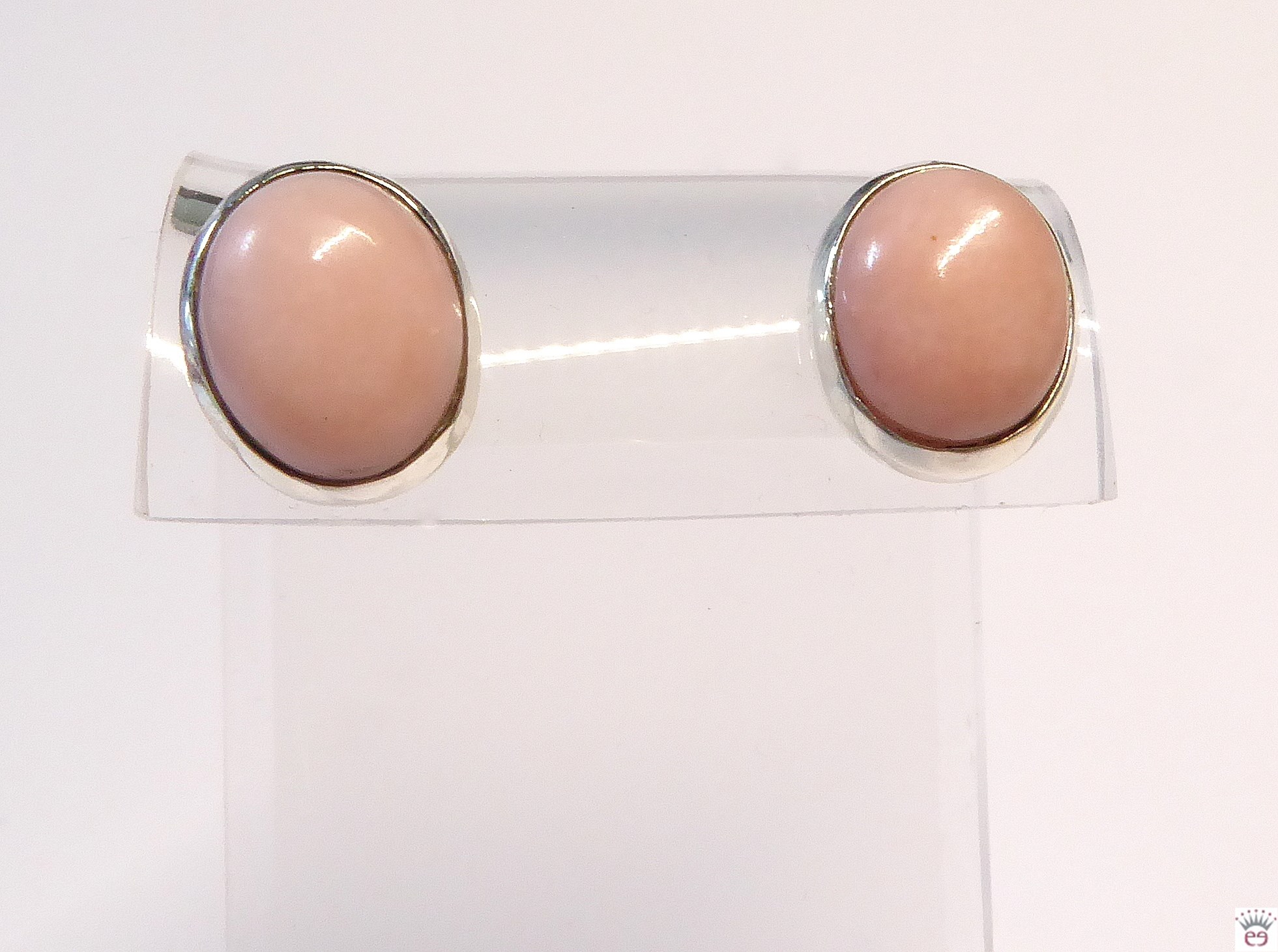 Edelsteinohrstecker Andenopal rosa (Pinkopal), Cabochon, Silber 925, ca. 10x12mm