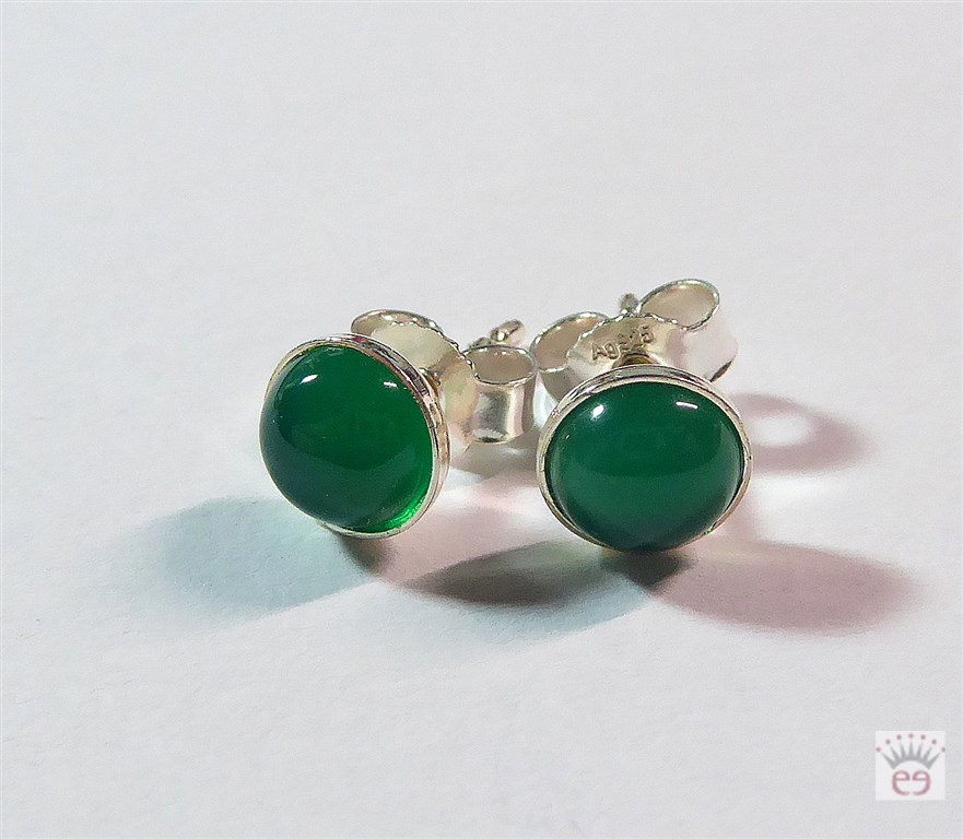 Edelsteinohrstecker Grün-Achat (beh.), Cabochon, Silber 925, ca. 7 mm