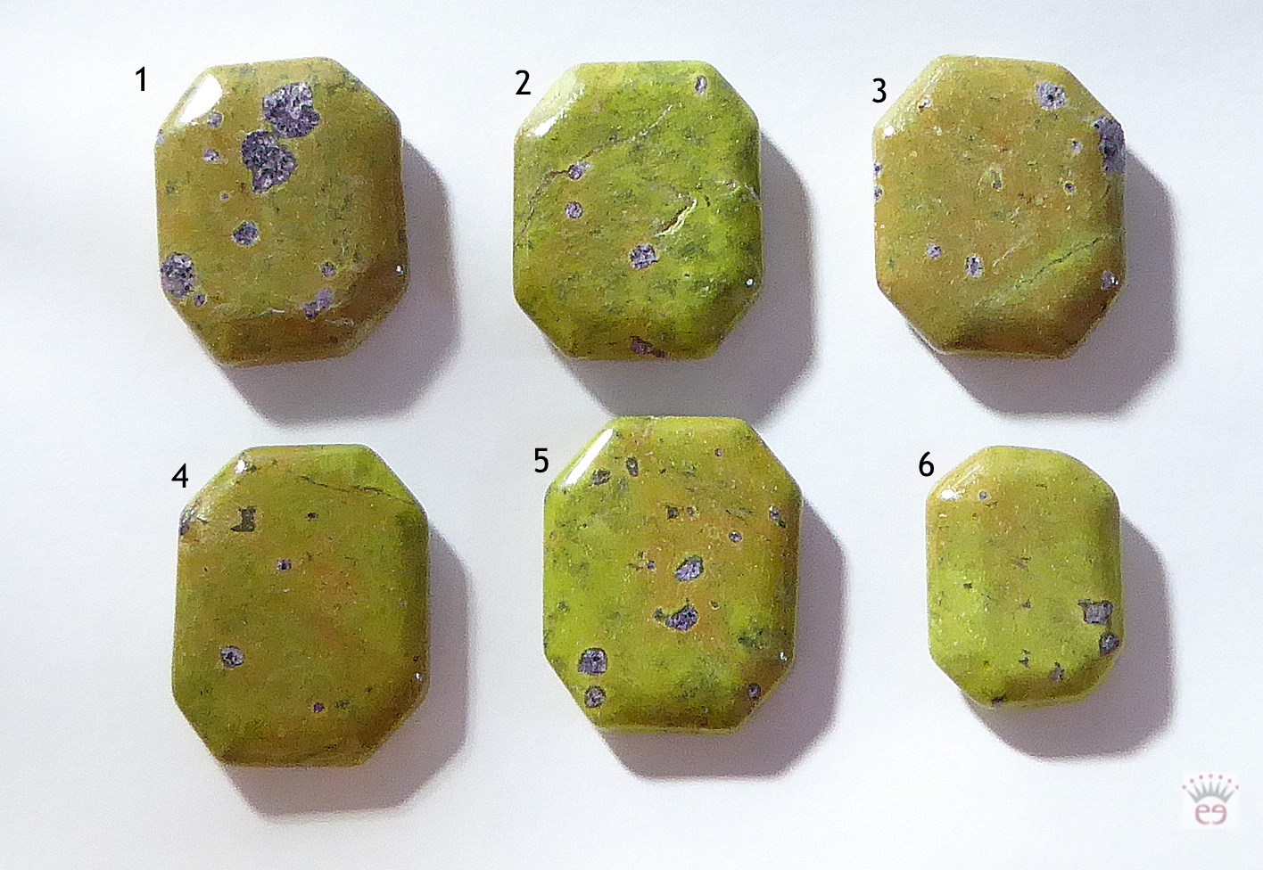 Achteckiger Flatstone aus Stichit (lila) in Matrix (grün)