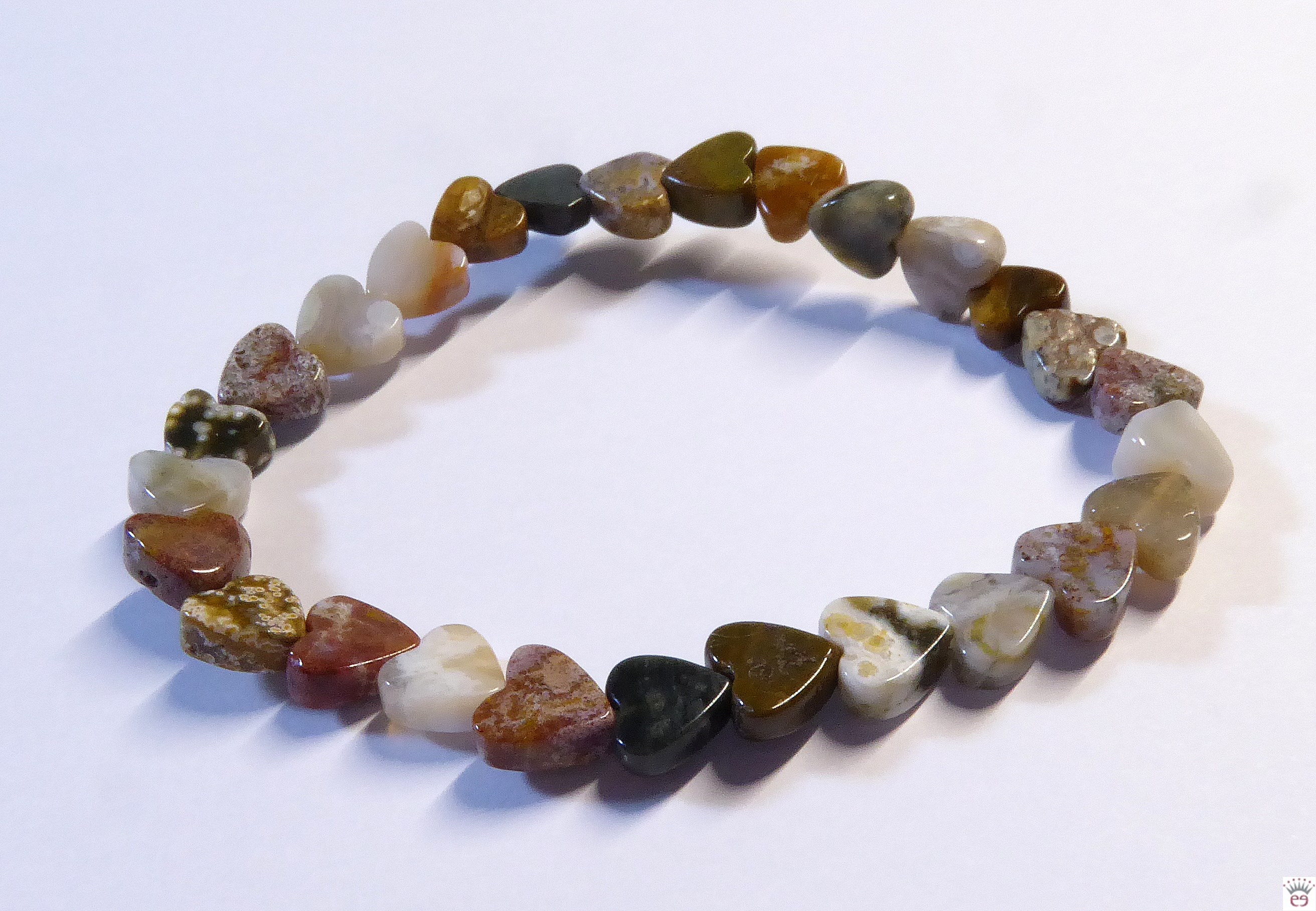 Edelsteinarmband Ozeanjaspis, Kinderarmband, Herz, ca. 6 mm, ca. 15cm lang