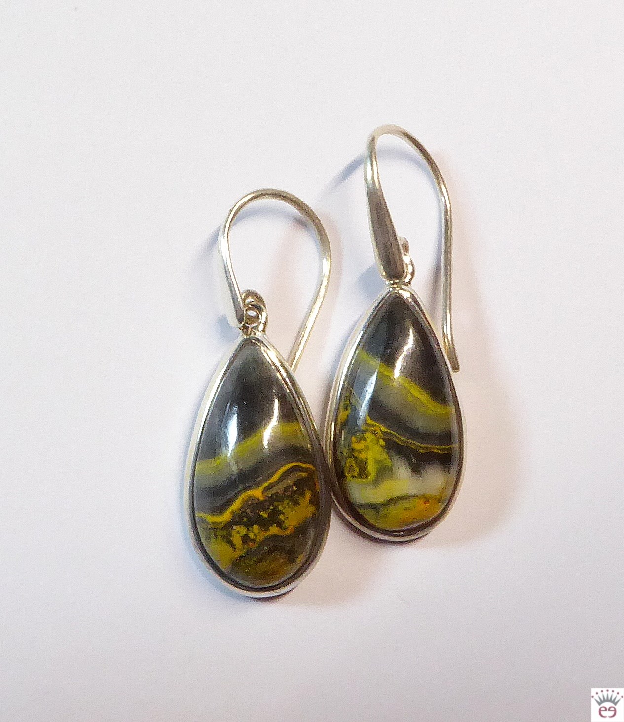Edelsteinohrhänger Hummel Jaspis, Tropfen, Silber 925, ca. 22x12mm