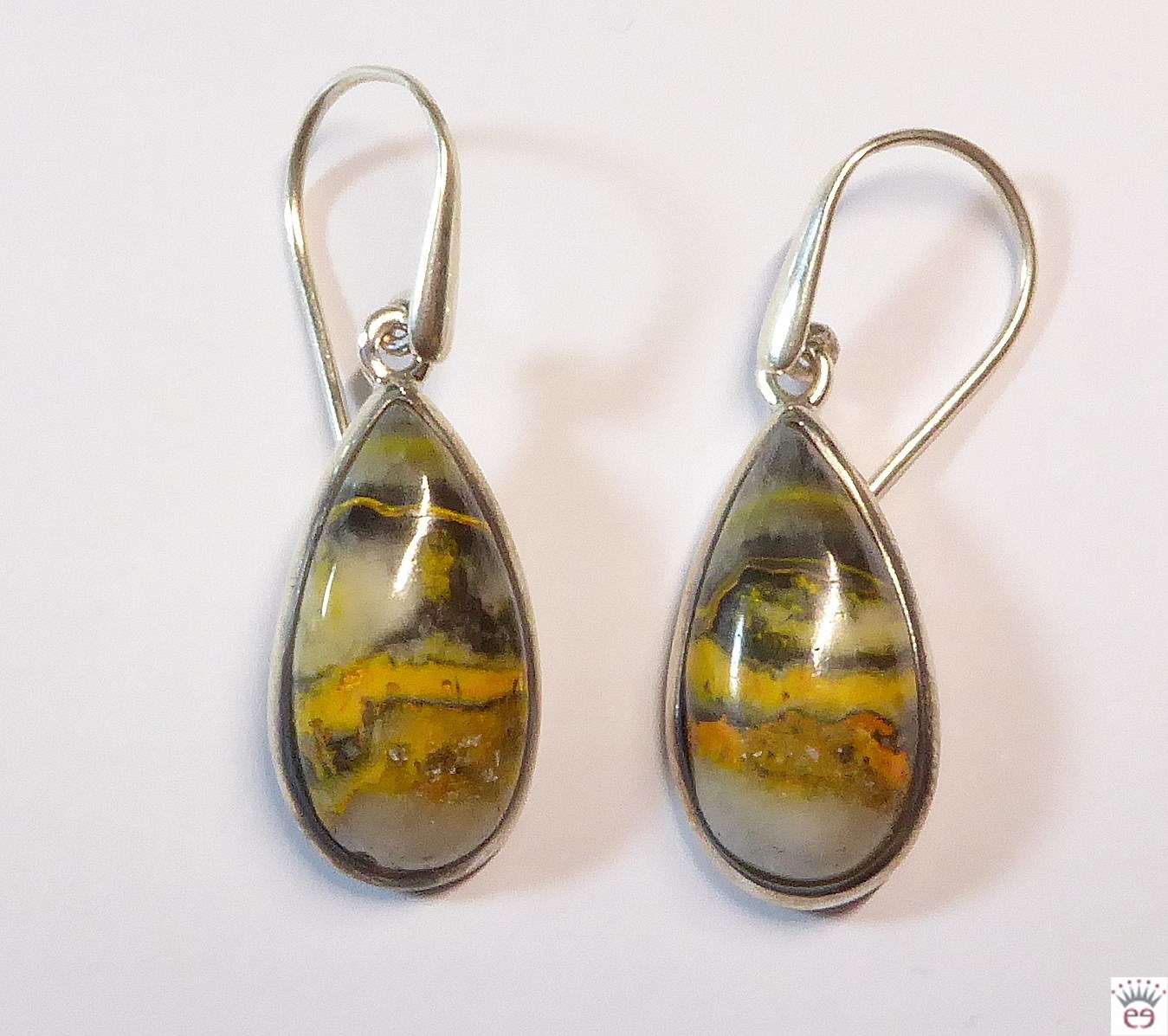 Edelsteinohrhänger Hummel Jaspis, Tropfen, Silber 925, ca. 22x12mm