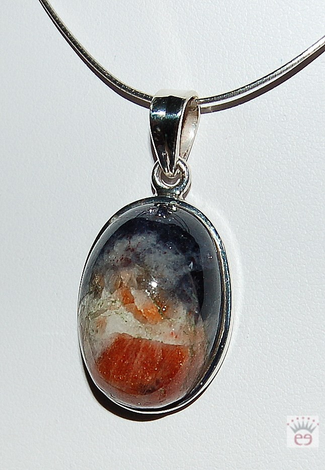 Ovaler Silberanhänger mit einem Cabochon aus Iolith-Sonnenstein an einer großen Silberöse