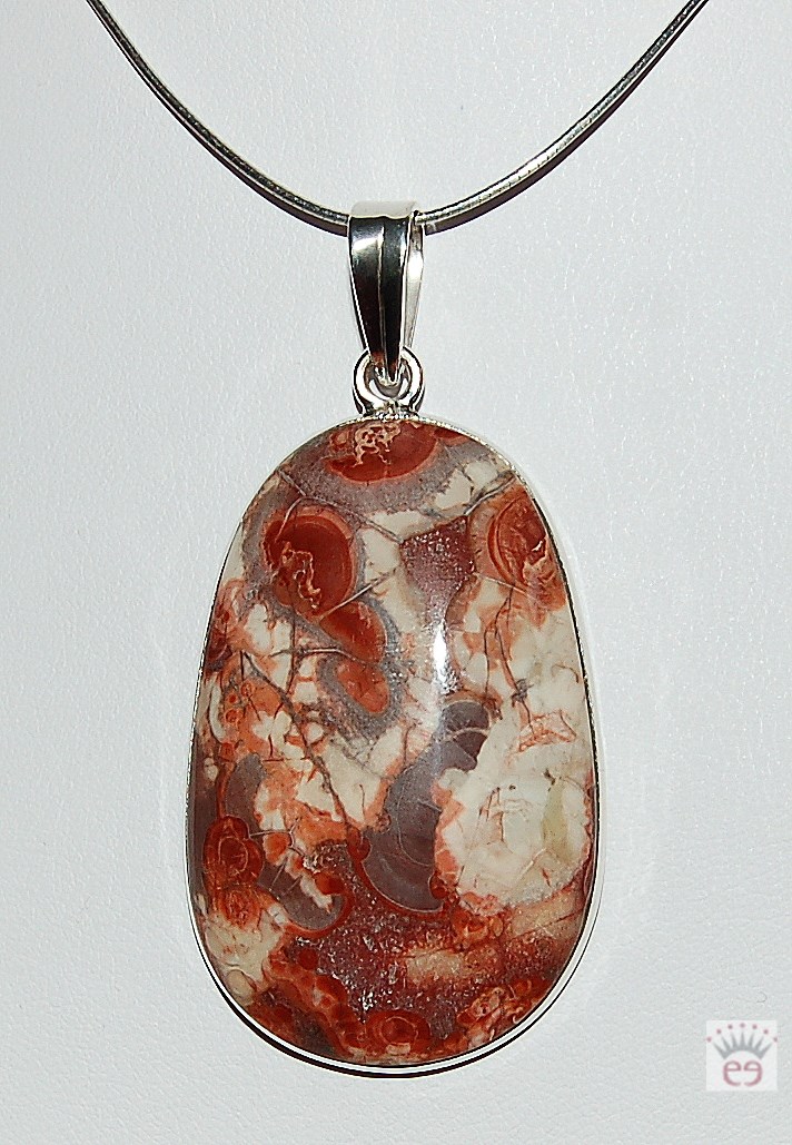 Edelsteinanhänger Fossile Koralle, oval, Silber 925, ca. 44x28mm