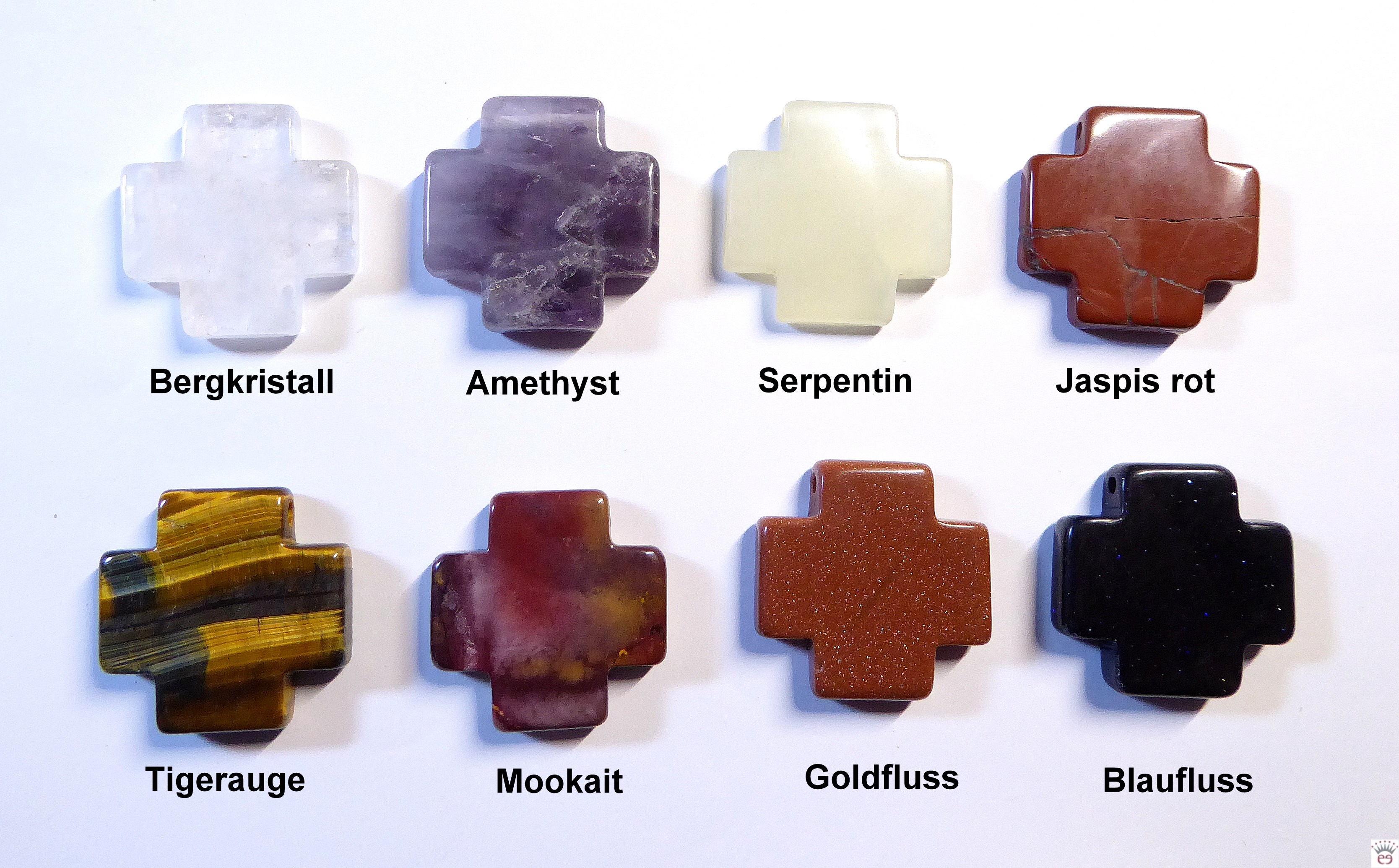 Flache Edelsteinkreuze in diversen Steinsorten
