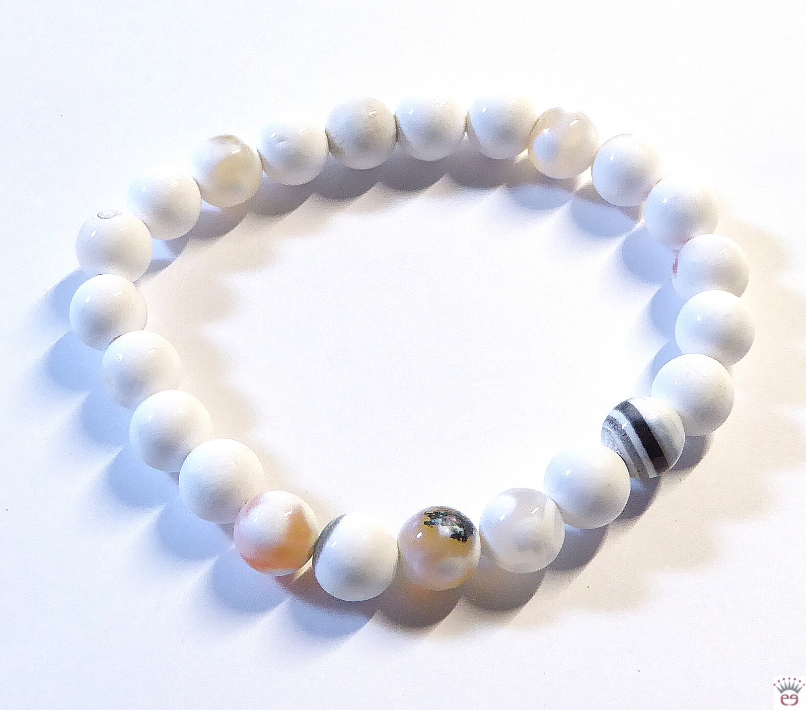 Edelstein-Kugelarmband weißer Achat (Mongolei)