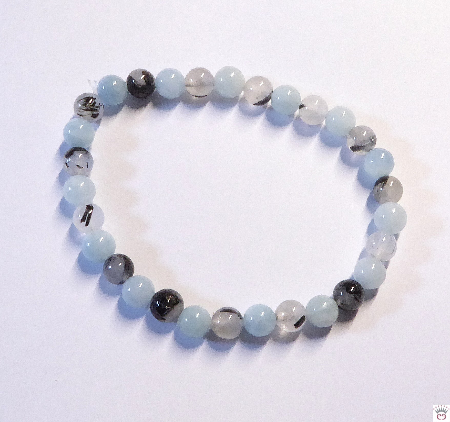Edelsteinarmband Aquamarin-Turmalinquarz, Kugelarmband, ca. 6 mm, ca. 19 cm lang