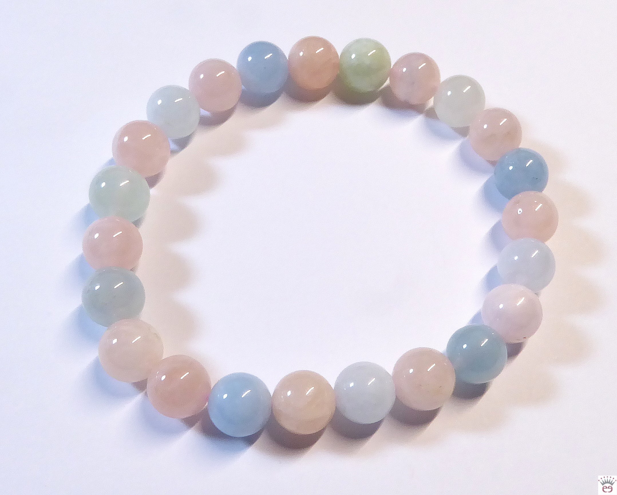 Edelsteinarmband Beryll Multicolor, Kugelarmband, ca. 8mm, ca. 18 cm lang