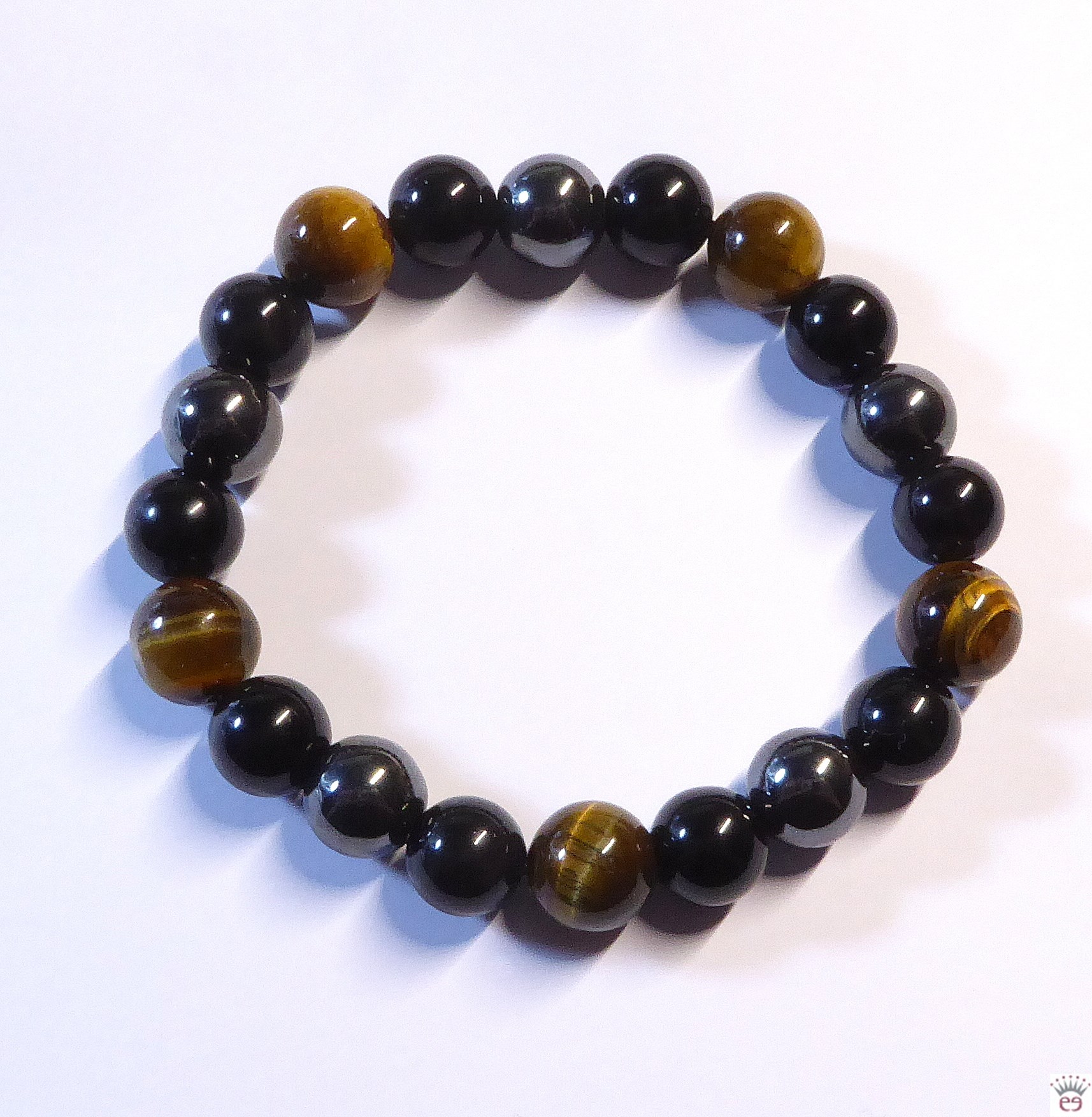 Edelstein-Kugelarmband Hämatit, Obisidian und Tigerauge