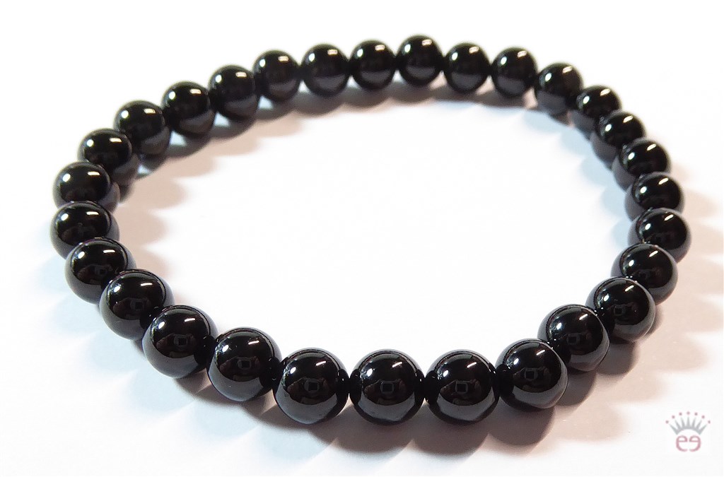 Edelsteinarmband Schwarzer Turmalin (Schörl), Kugelarmband, ca. 6mm, ca. 18 cm lang