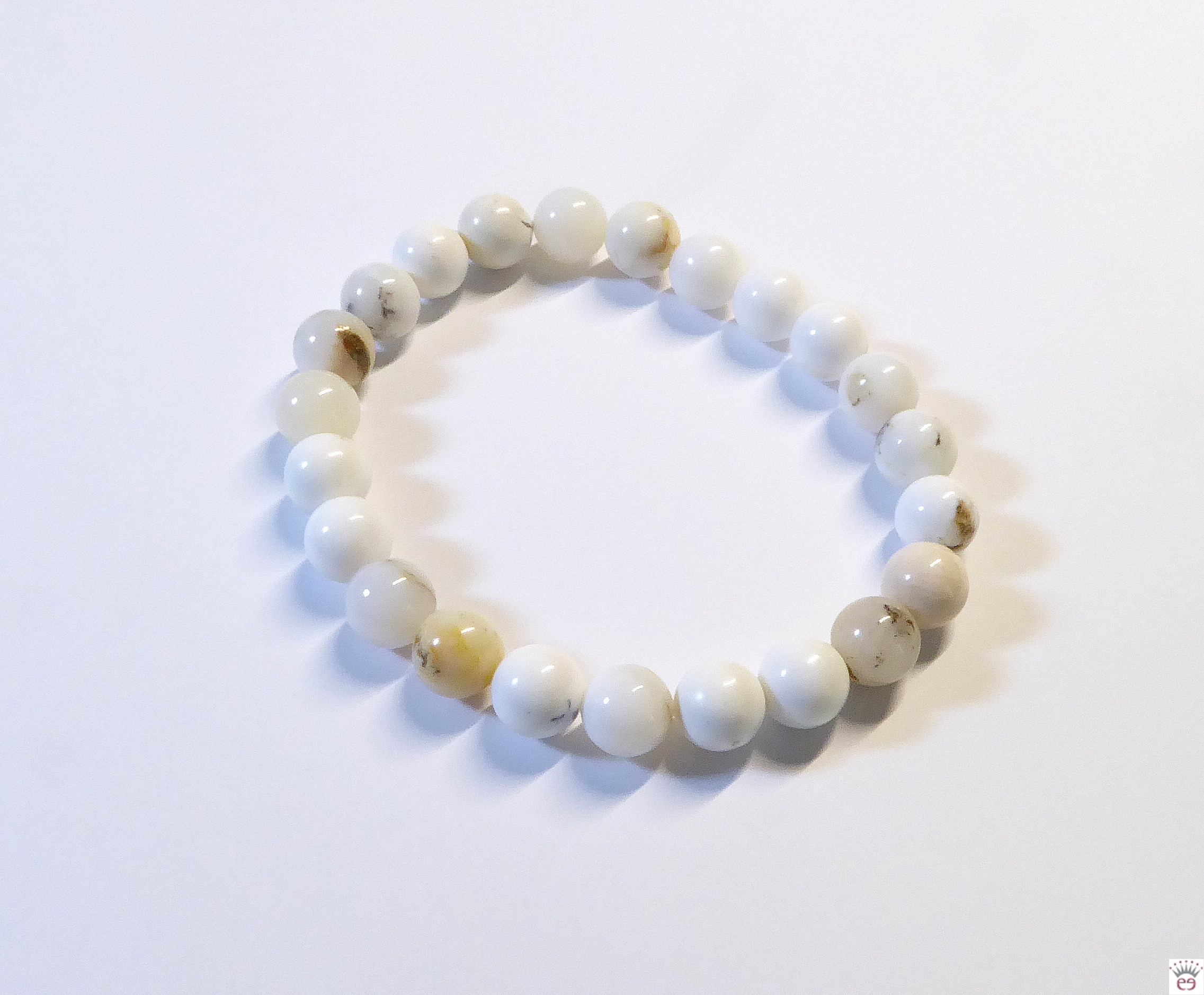 Edelsteinarmband Weißopal, Kugelarmband, ca. 8 mm, ca. 18 cm lang
