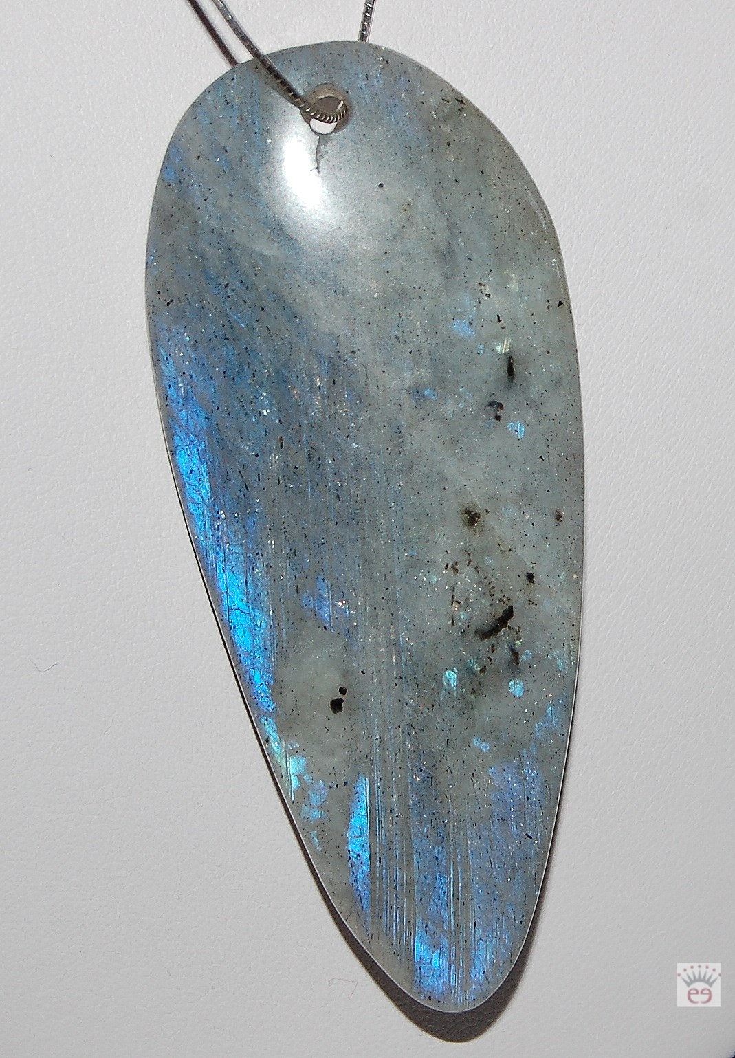 Edelsteinanhänger Labradorit weiß, Tropfenform, ca. 74x32mm, Frontbohrung