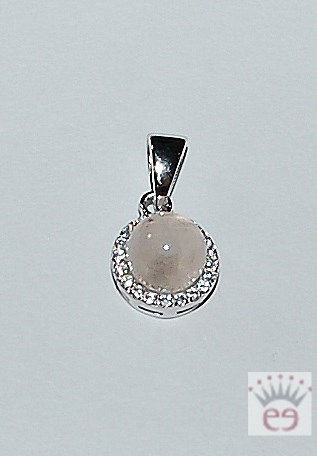 Edelsteinanhänger Rosenquarz mit Zirkonia, rund, Silber 925, rhod., ca. 9 mm