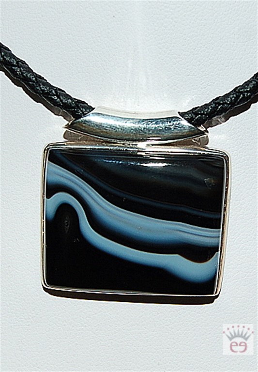 Edelsteinanhänger Sardonyx, Pipe-Anhänger, Silber 925, ca. 31x30mm