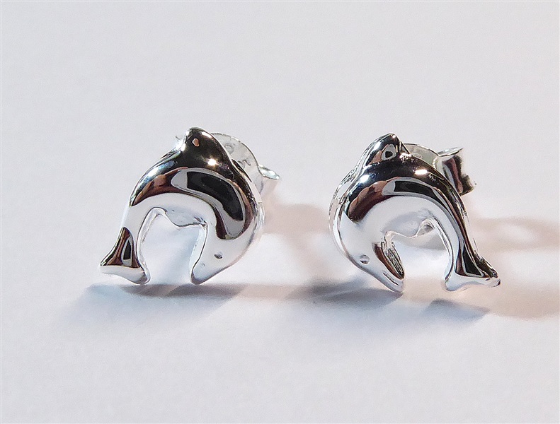 Ein hübsches, kleines Paar Delphin-Silberohrstecker für Kinder (nicht für Kinder unter 3 Jahren geeignet) - oder natürlich auch für die, die gerne ein Paar kleine Ohrstecker haben möchten.