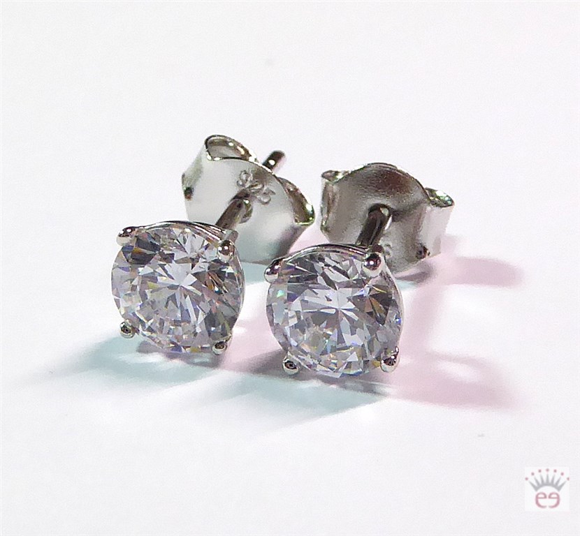 Silberohrstecker mit einem runden, facettierten Zirkonia in kristall.