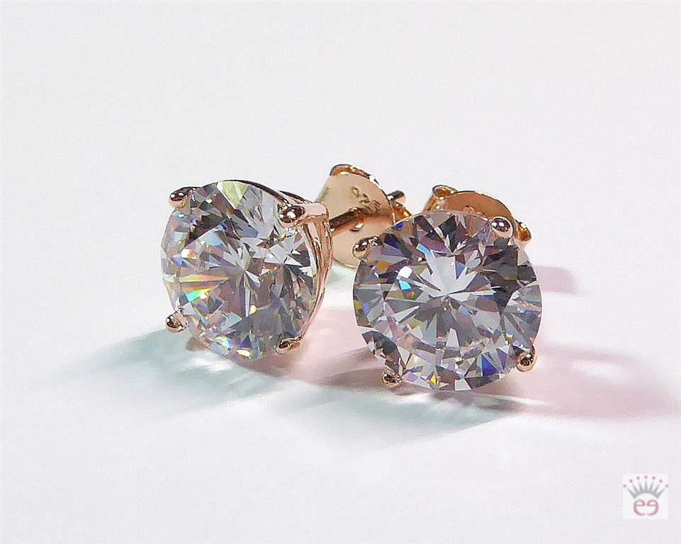 Silberohrstecker Zirkonia, rund, kristall, Silber 925, rosé vergoldet, ca. 8mm