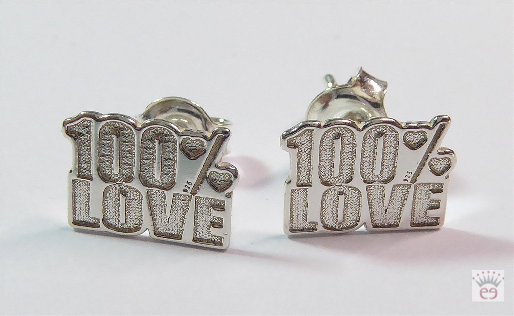 Silberohrstecker "100 % LOVE", Silber 925, ca. 10x7mm