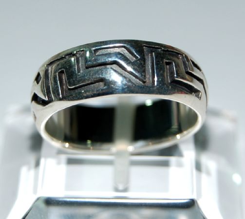 Silberring mit geschwärzten Vertiefungen, einmal um den Ring herumgehend