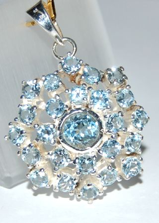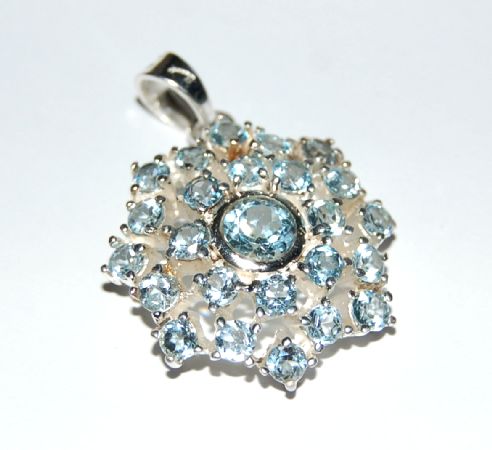 Sternförmiger Silberanhänger mit 25 facettierten Blautopasen
