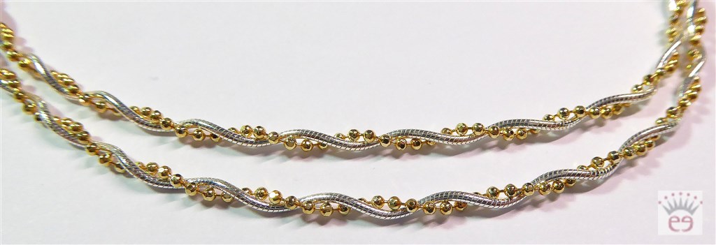 Zweireihige, ineinander verschlungene Silberkette bestehend aus einer Schlangenkette in Silber und einer Kugelkette in Silber vergoldet.